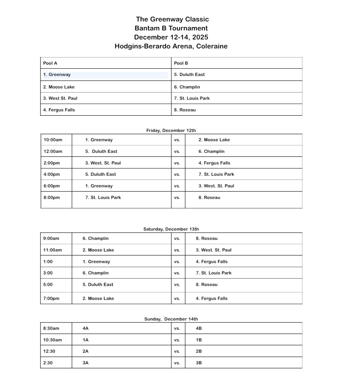 HIBBING TOURNAMENT JAN 16-18th 2026